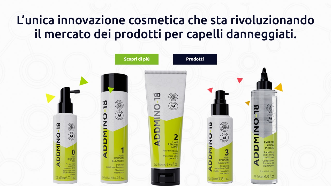 כל מוצרי Addmino-18 פועלים לפי הגישה העדכנית ביותר של יופי, ניקיון ובריאות השיער. הסדרה מכילה ריכוז גבוה של רכיבים פעילים טבעיים, כולם טבעוניים, ומתאימים למי שמחפש קוסמטיקה טבעית ומוצרי שיער טבעוניים באיכות הגבוהה ביותר.